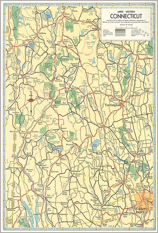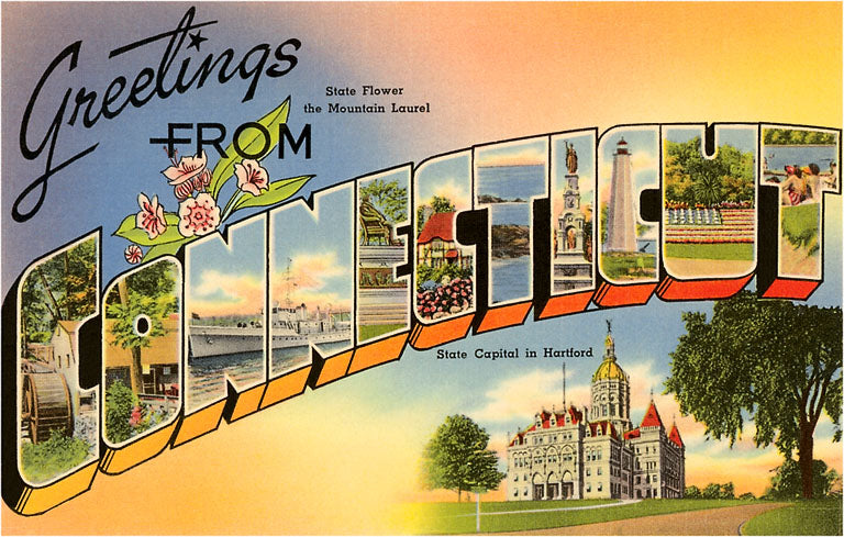 CT-274 Map of Connecticut - Vintage Image