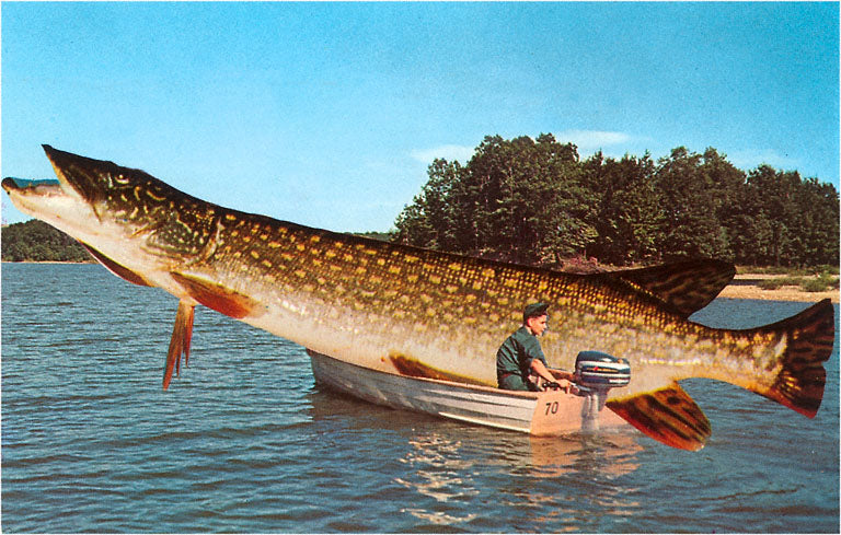 FS-23 Giant Pike in Boat - Vintage Image