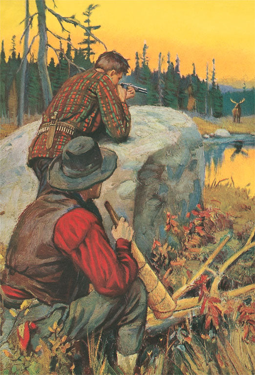 FS-141 Man Shooting Moose - Vintage Image
