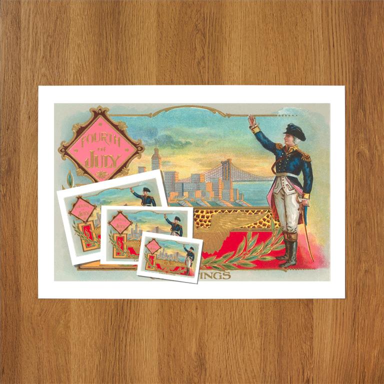 JF-29 4th of July, George Washington Greeting City - Vintage Image