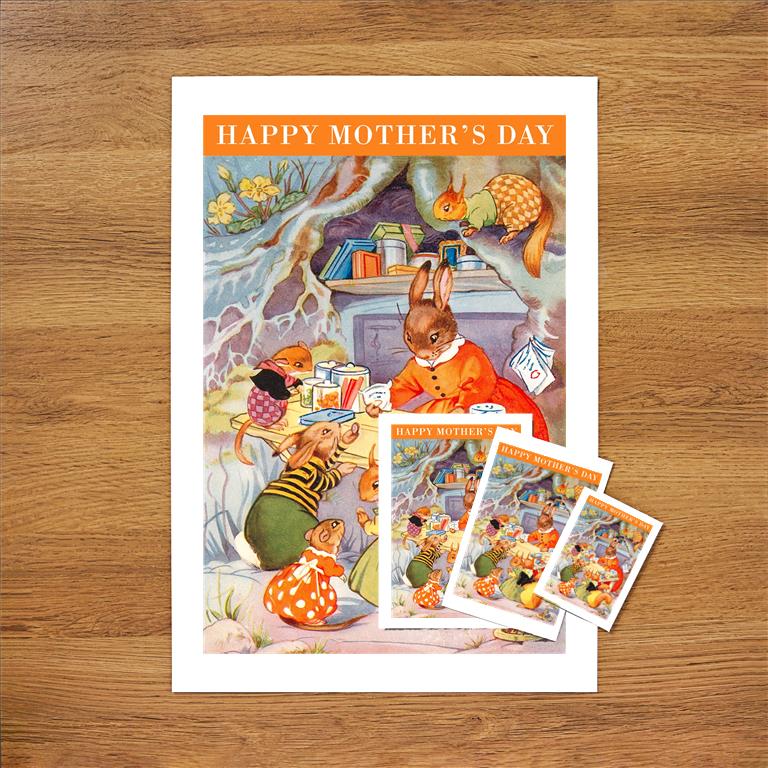 MY-125 Happy Mother's Day, Rabbit Family - Vintage Image