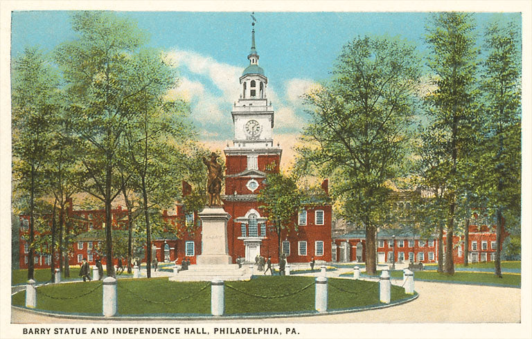 PA-25 Barry Statue, Independence Hall, Philadelphia, Pennsylvania - Vintage Image