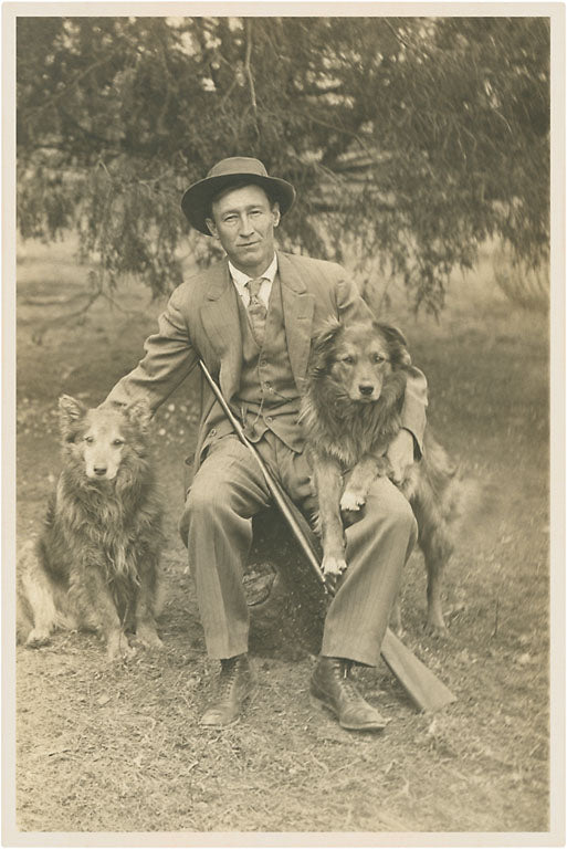 PZ-08 Man with Rifle and Two Dogs - Vintage Image