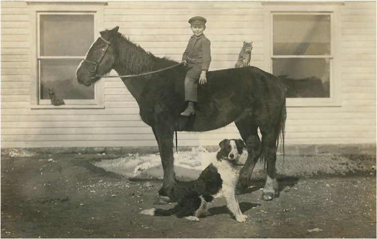 PZ-21 Farmboy with Cat on Horse and Dog - Vintage Image