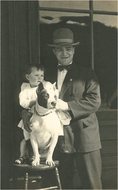 PZ-09 Man and Boy with Pit Bull Terrier - Vintage Image