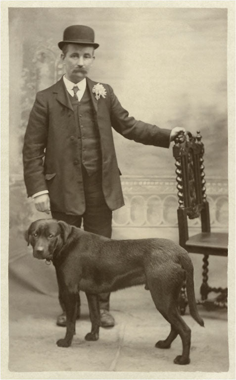 PZ-11 Man with his Black Labrador - Vintage Image
