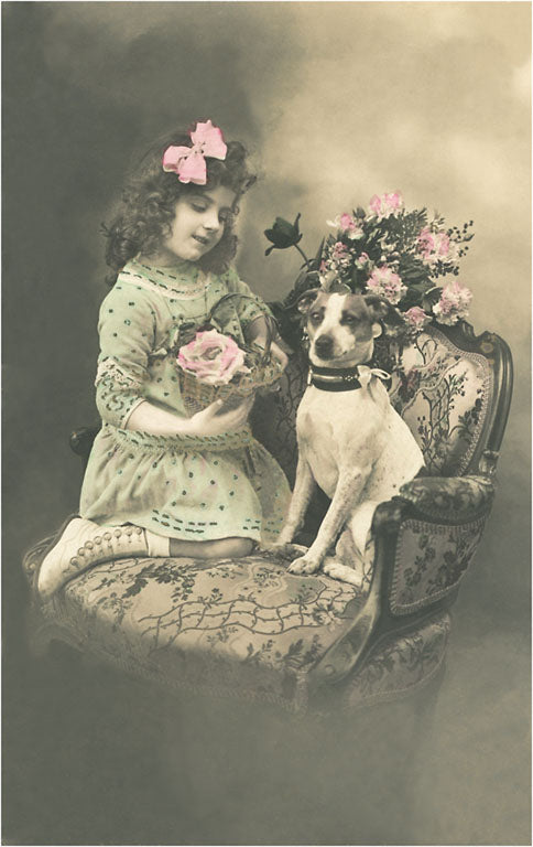 PZ-13 Victorian Girl with Fox Terrier - Vintage Image
