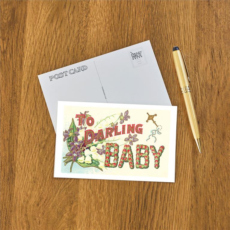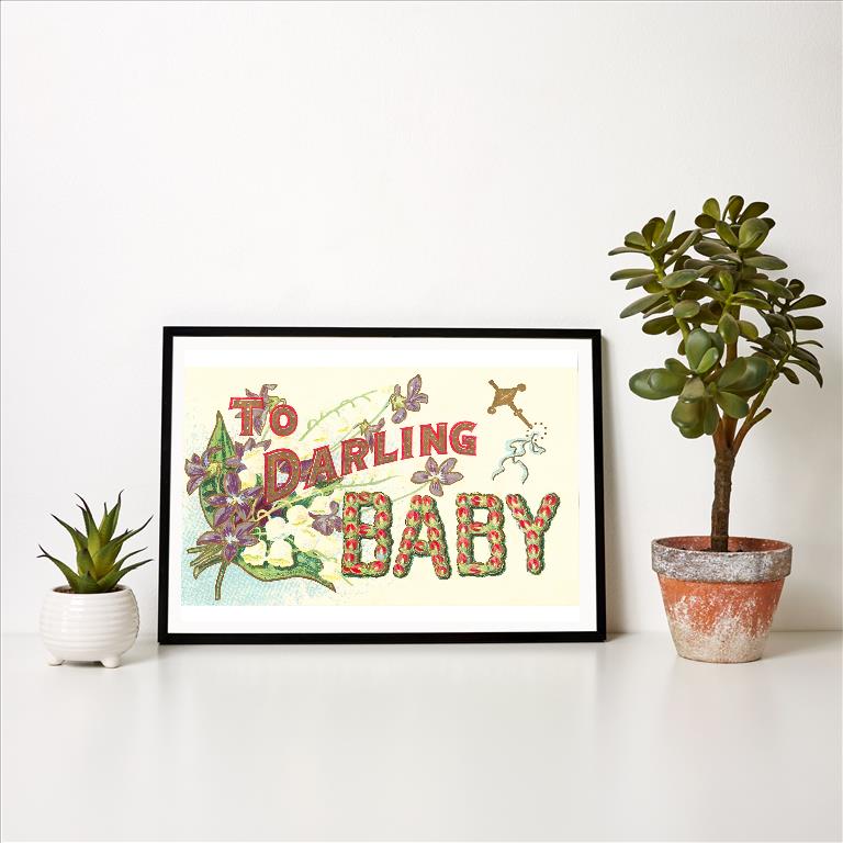 LL-22 To Darling Baby, Floral Lettering - Vintage Image