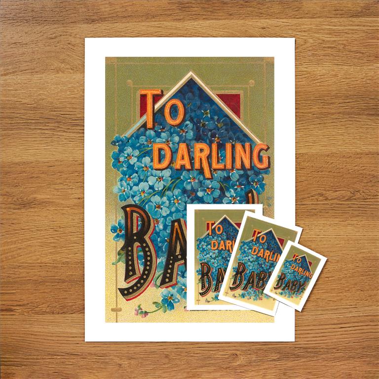 LL-27 To Darling Baby, Floral Lettering - Vintage Image