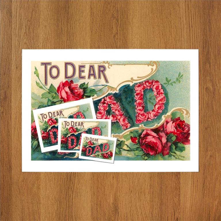 LL-32 To Dear Dad, Floral Lettering - Vintage Image