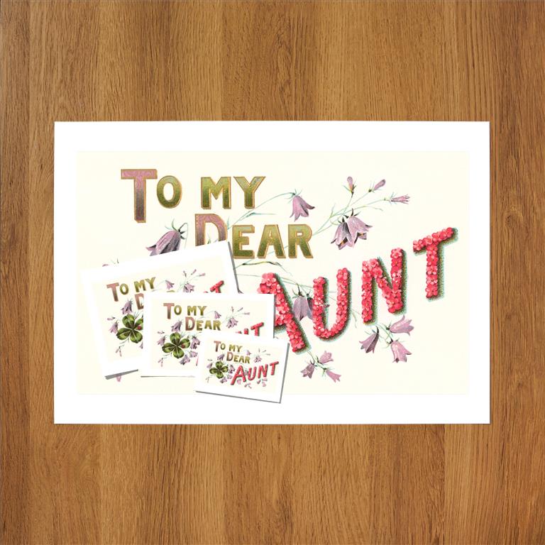 LL-35 To My Dear Aunt, Floral Lettering - Vintage Image