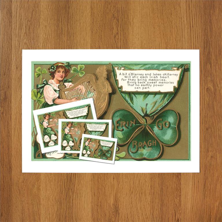 SP-02 St. Patricks Day Poem, Girl Playing Harp - Vintage Image