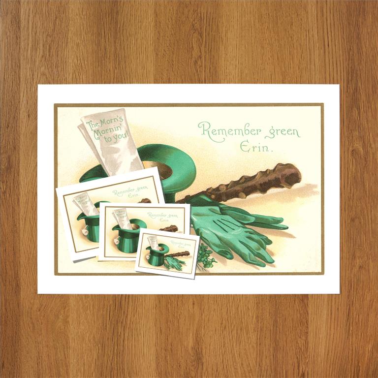 SP-04 St. Patricks Day, Irish Motifs, Remember Green Erin - Vintage Image