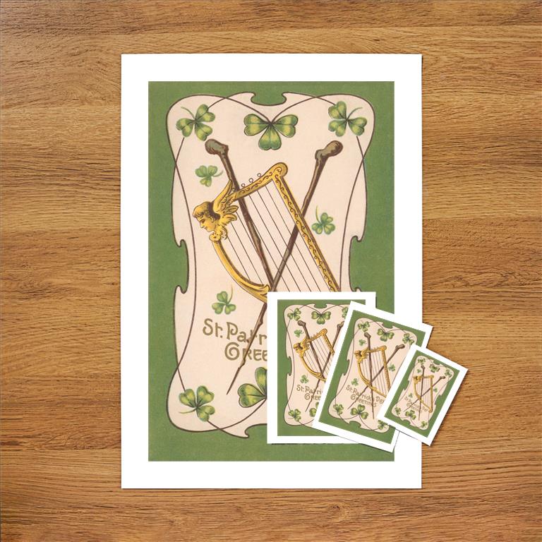 SP-110 Harp and Shillelaghs - Vintage Image