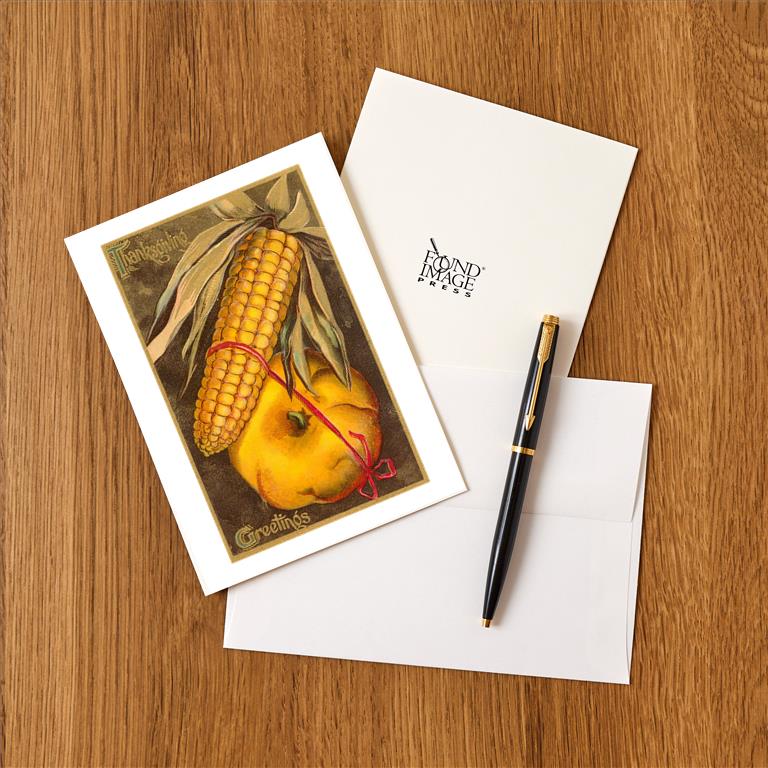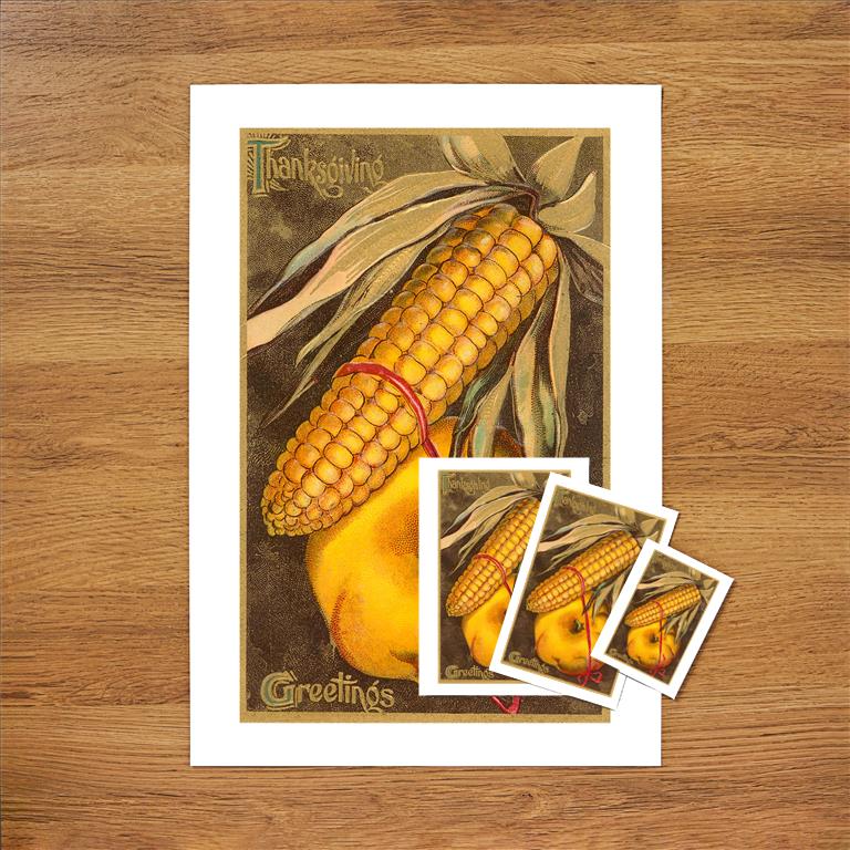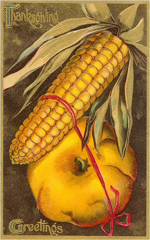 TD-03 Thanksgiving Greetings, Corn and Pumpkin - Vintage Image