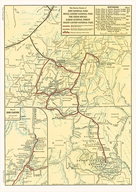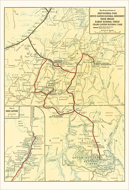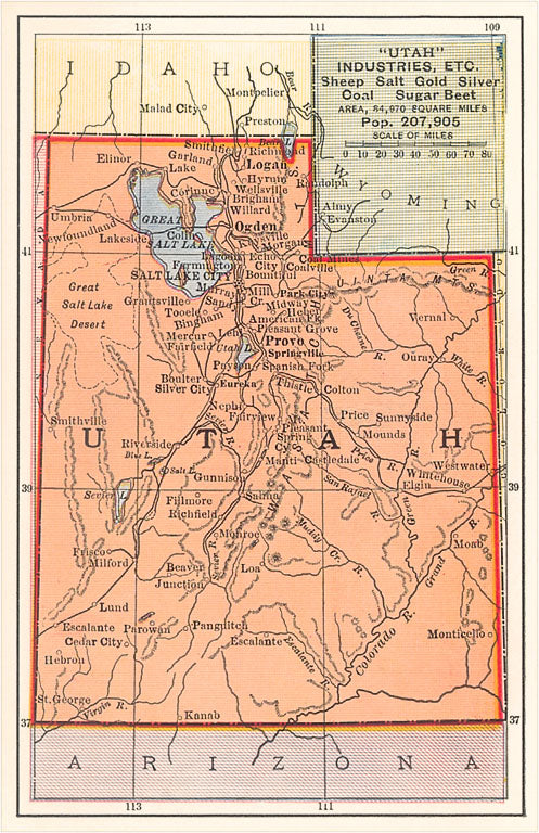 UT-187 Map of Utah - Vintage Image