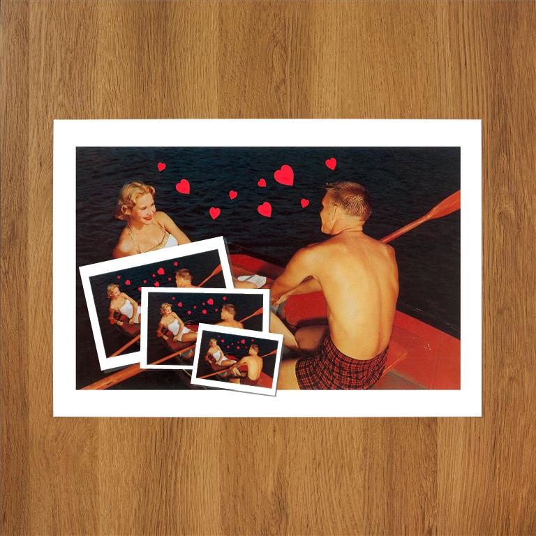 VL-112 Couple in Rowboat, Hearts - Vintage Image