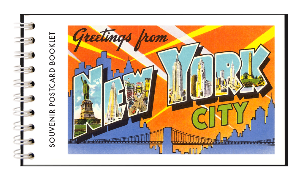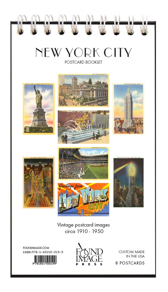 Greetings from New York City! This postcard booklet features 8 beautiful vintage postcard images of New York City from 1910 to 1950. Vintage views of the Empire State Building, the Chrysler Building, New York Public Library, Times Square, and Rockefeller Center grace the 8 perforated tear-out pages of this sweet little book. Spiral bound, it is printed on acid-free, natural white, heavy card stock, and measures 3.5 x 6.25. Give as a gift, enjoy as a memento, or tear out postcards to mail to your friends -- all you need is a postcard stamp! Made in the USA