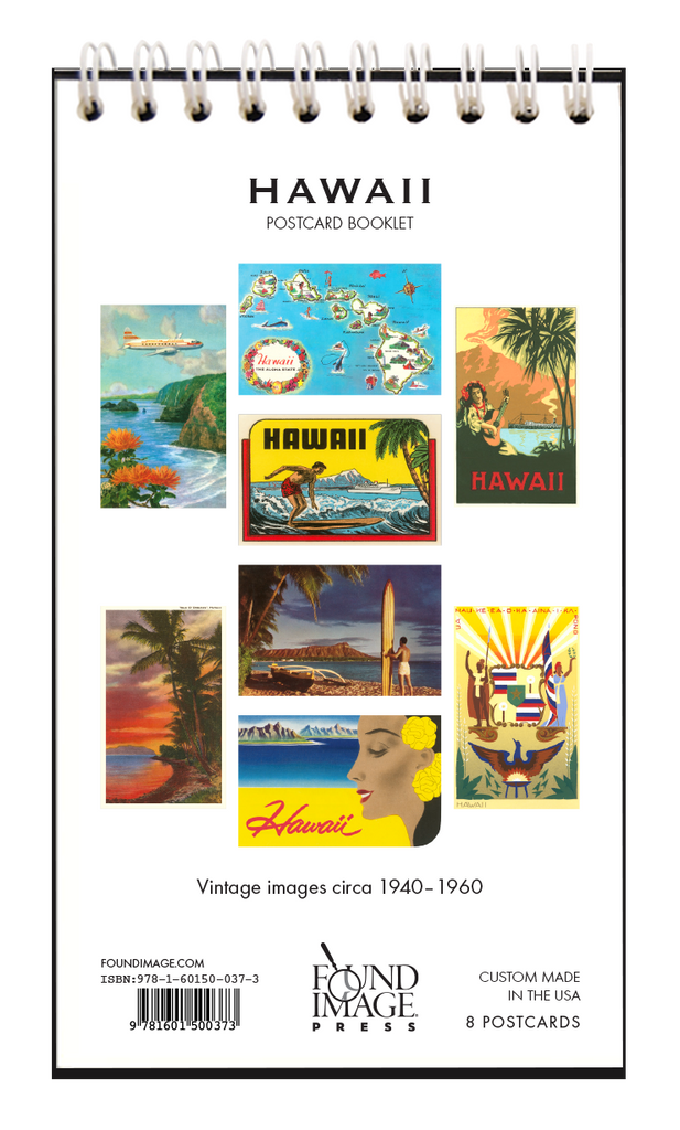 This postcard booklet features 8 beautiful vintage postcard images of the tropical islands of Hawaii from 1940 to 1960. Palm trees, surfers, and beaches at sunset grace the 8 perforated tear-out pages of this sweet little book. Spiral bound, it is printed on acid-free, natural white, heavy card stock, and measures 3.5x 6.25. Give as a gift, enjoy as a memento, or tear out postcards to mail to your friends -- all you need is a postcard stamp! Made in the USA.