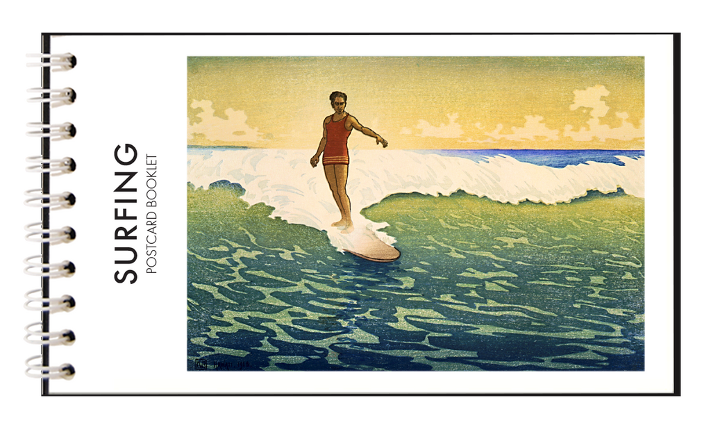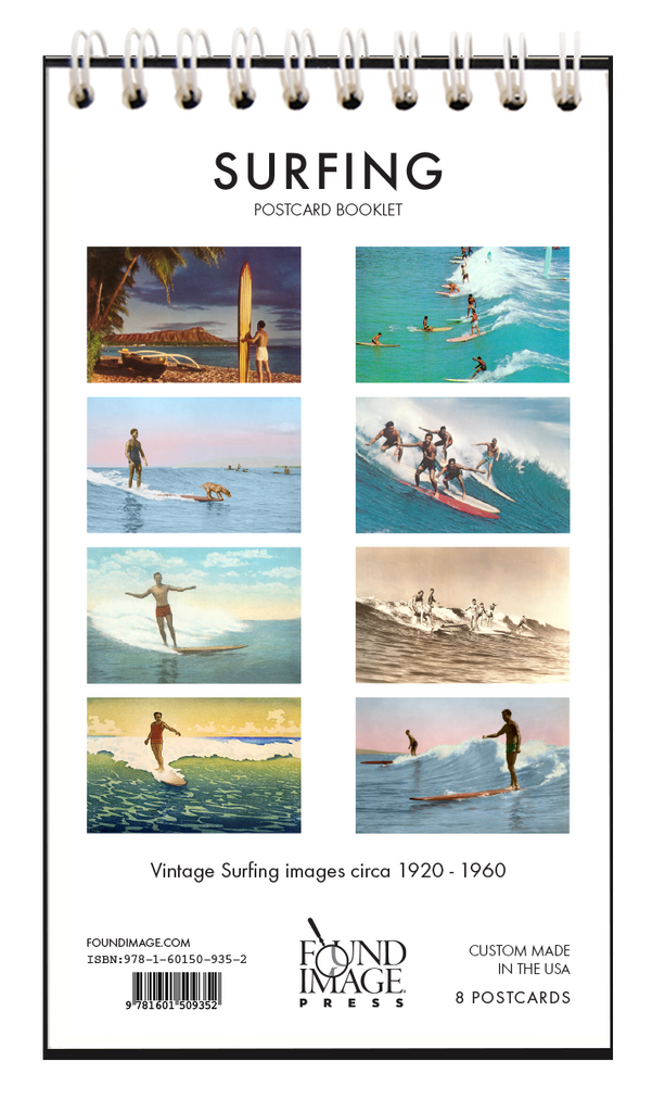 This Surfing postcard booklet features 8 vintage images of surfers surfing from 1920 to 1960. Vintage views of surfers riding the waves from Hawaii to California grace the 8 perforated tear-out pages of this sweet little book. Spiral bound, it is printed on acid-free, natural white, heavy card stock, and measures 3.5 x 6.25. Give as a gift, enjoy as a memento, or tear out postcards to mail to your favorite surfers -- all you need is a postcard stamp! Made in the USA.