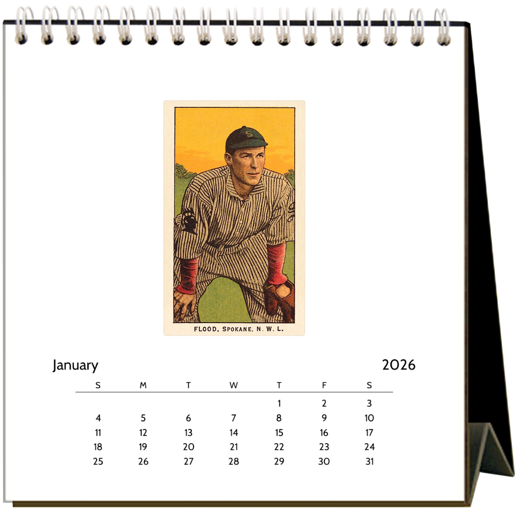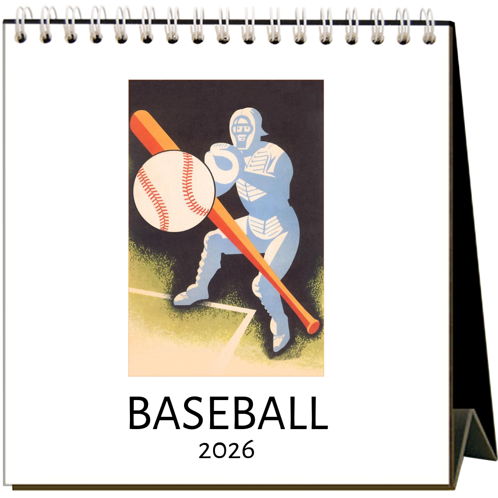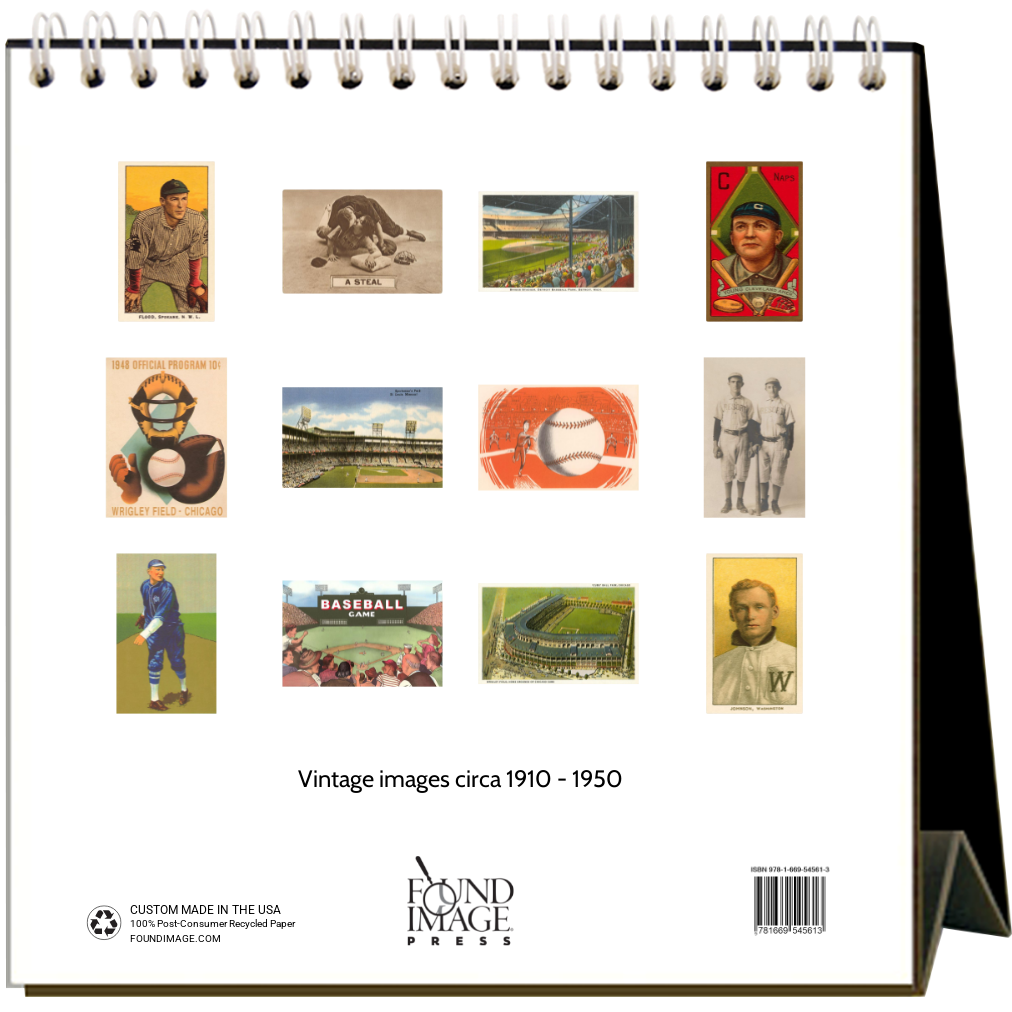What could be more American than Baseball? This easel desk calendar features 12 vintage images of everything baseball from 1910 to 1950. Pitchers, players, stadiums, and a kiss at home base (there's no kissing in baseball!) - this calendar has baseball covered. It measures 6â" x 7â" x 3â" when expanded and is printed on 100% post-consumer recycled, acid-free, natural white, heavy cardstock. Made in the USA!