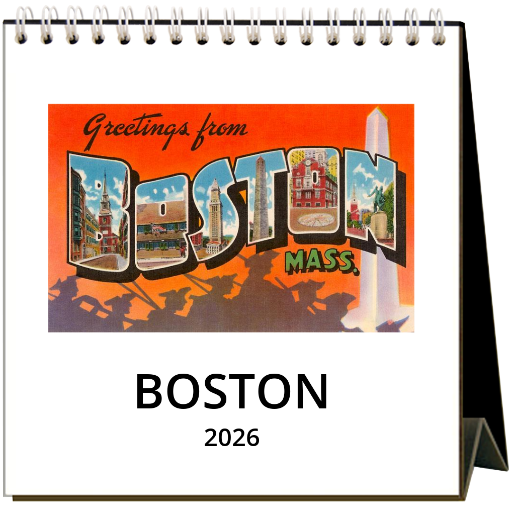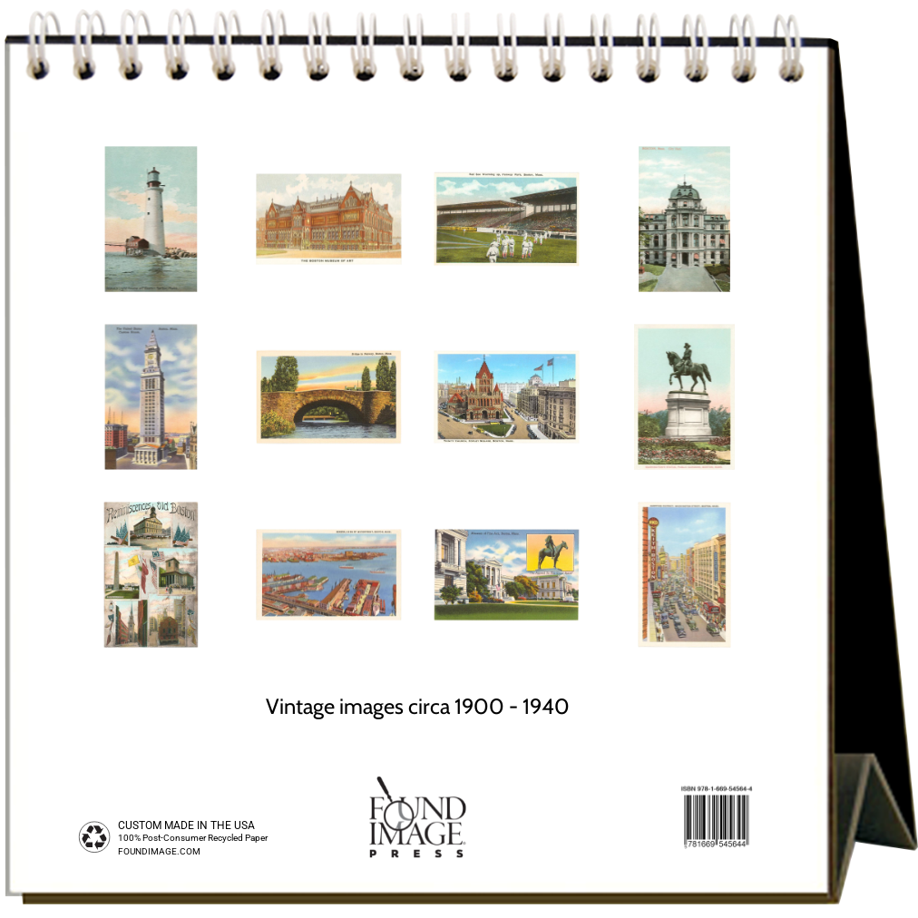 Greetings from Boston! Visit one of America's greatest historic cities, with this easel desk calendar at your side. Featuring 12 vintage postcard images of Boston from 1900 to 1940, the calendar measures 6â" x 7â" x 3â" when expanded and is printed on 100% post-consumer recycled, acid-free, natural white, heavy cardstock. Enjoy Graves Lighthouse, Custom House, Fenway Park, Museum of Art, City Hall, Trinity Church, and Washington Street without leaving the comfort of your chair. Made in the USA.