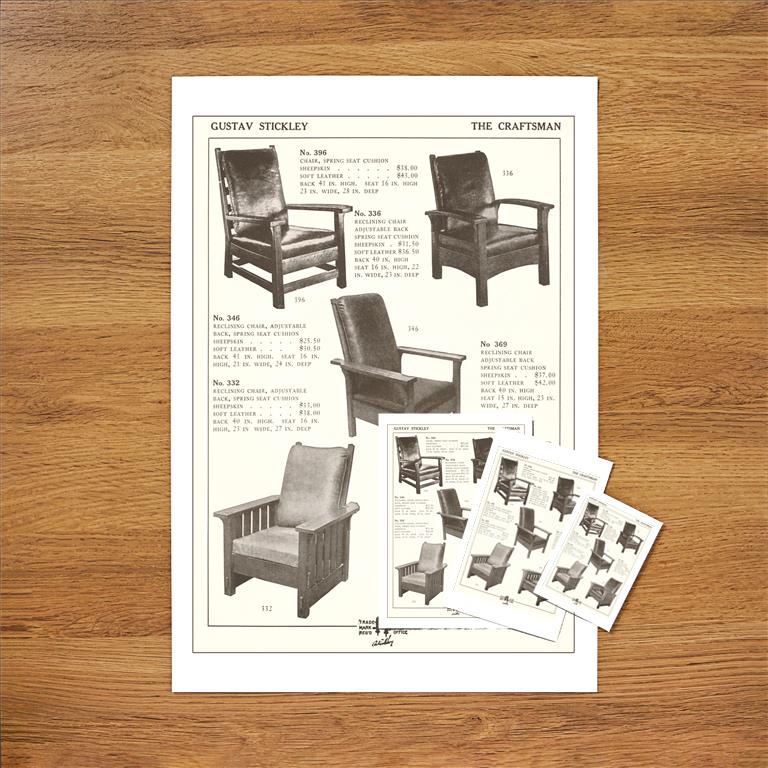 AD-58 Stickley Craftsman Wood and Leather Chairs - Vintage Image
