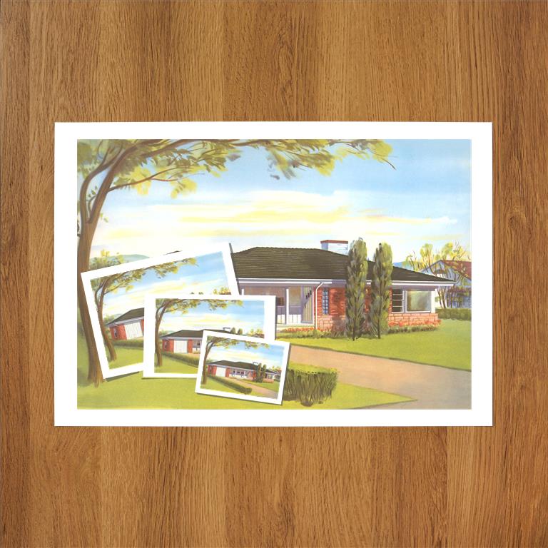 AD-218 Rendering of Small Suburban Home - Vintage Image
