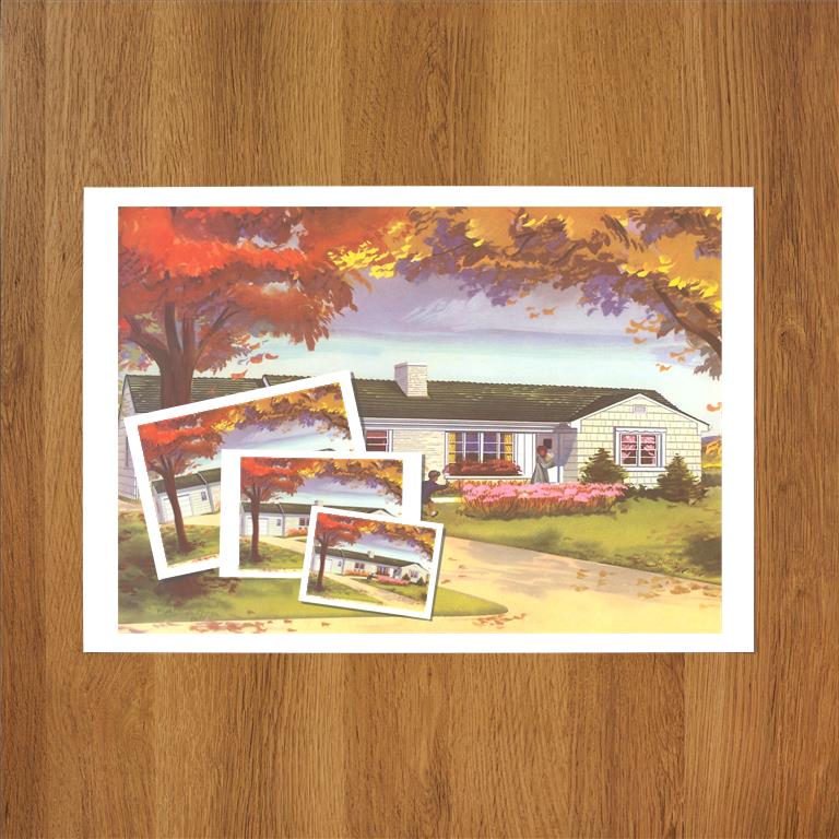 AD-219 Rendering of Suburban Home in Autumn - Vintage Image
