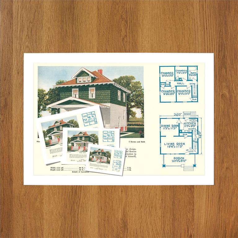 AD-241 Single-Family Home, Rendering and Floor Plans - Vintage Image