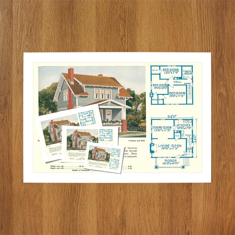 AD-243 Single-Family Home, Rendering and Floor Plans - Vintage Image