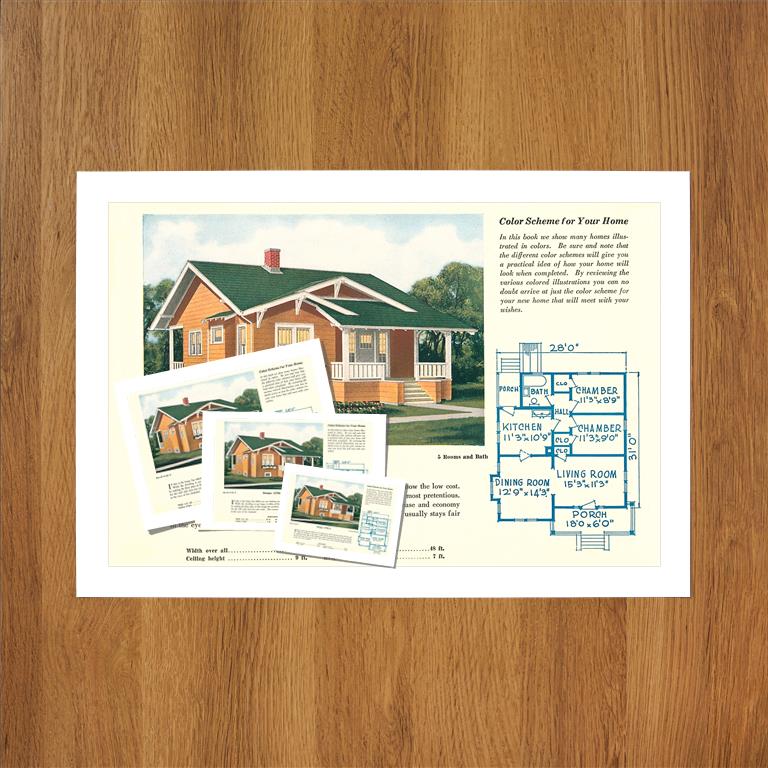 AD-258 Single-Family Home, Rendering and Floor Plans - Vintage Image