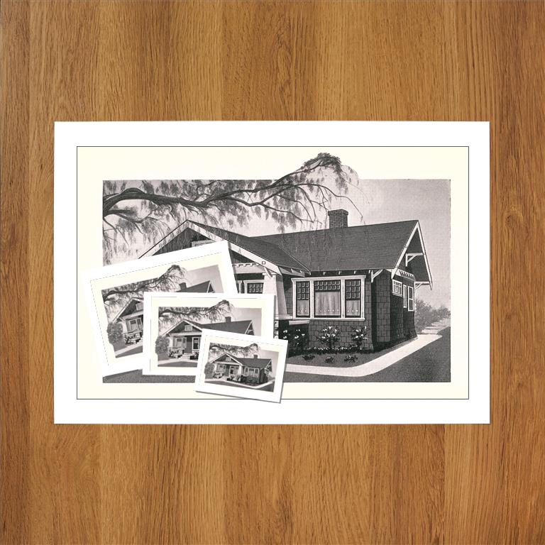 AD-319 Black and White Rendering of Craftsman Home - Vintage Image