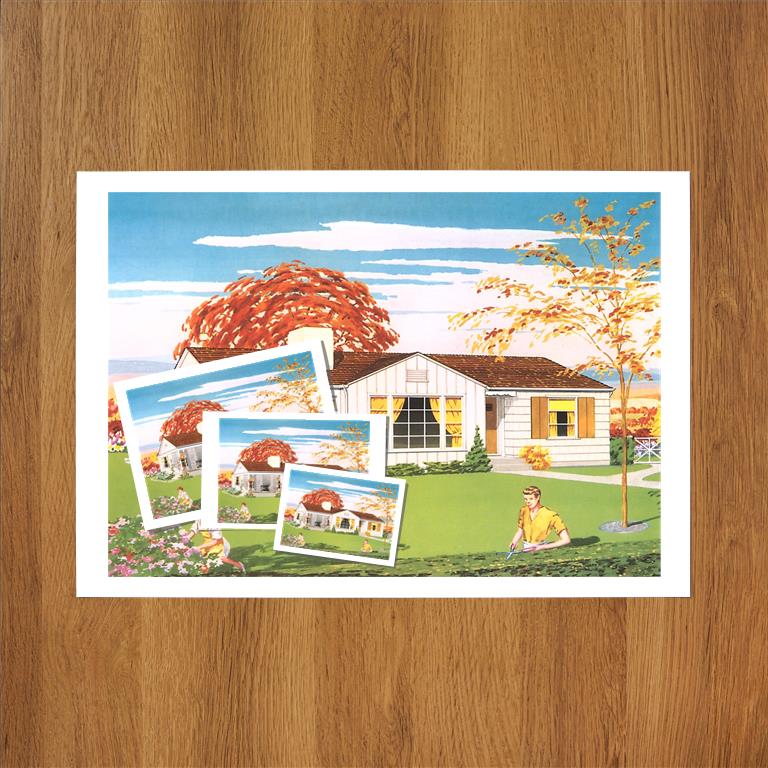 AD-355 American Suburban Home - Vintage Image