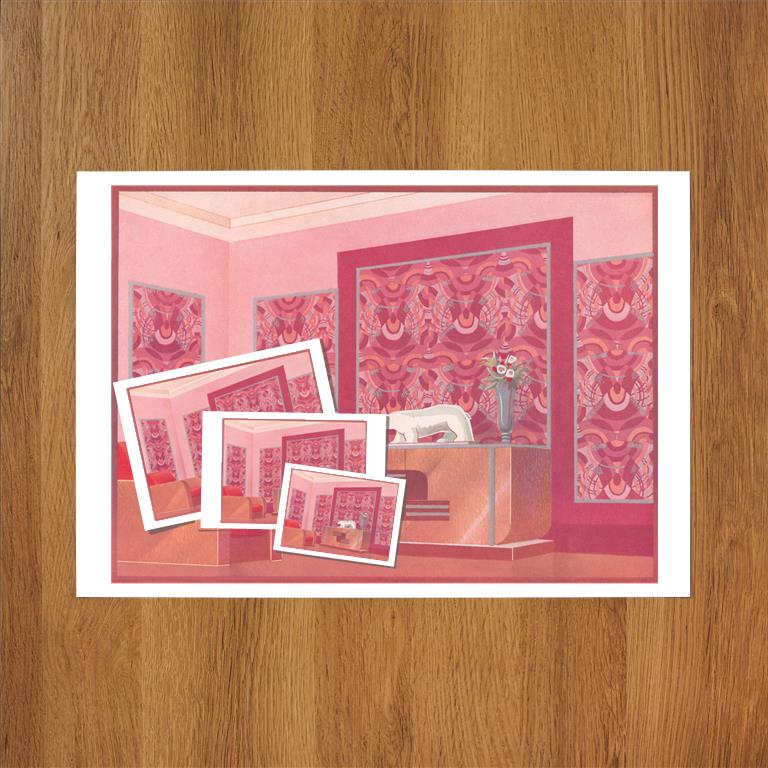 AD-629 Den with Wild Wallpaper - Vintage Image