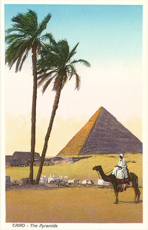 AH-06 Egyptian Pyramid with Camel and Palms - Vintage Image