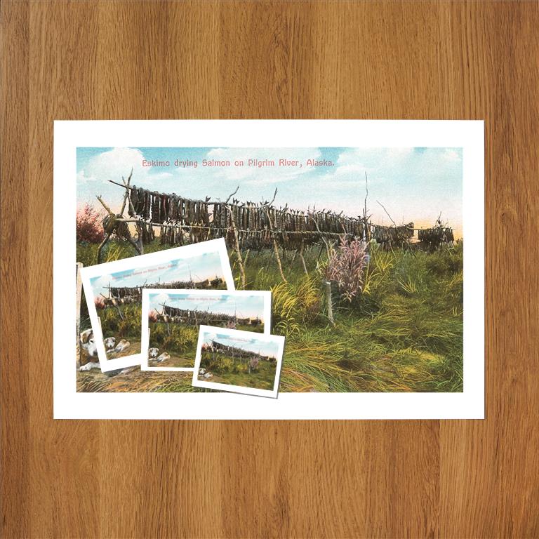 AK-58 Fish Drying on Pilgrim River - Vintage Image