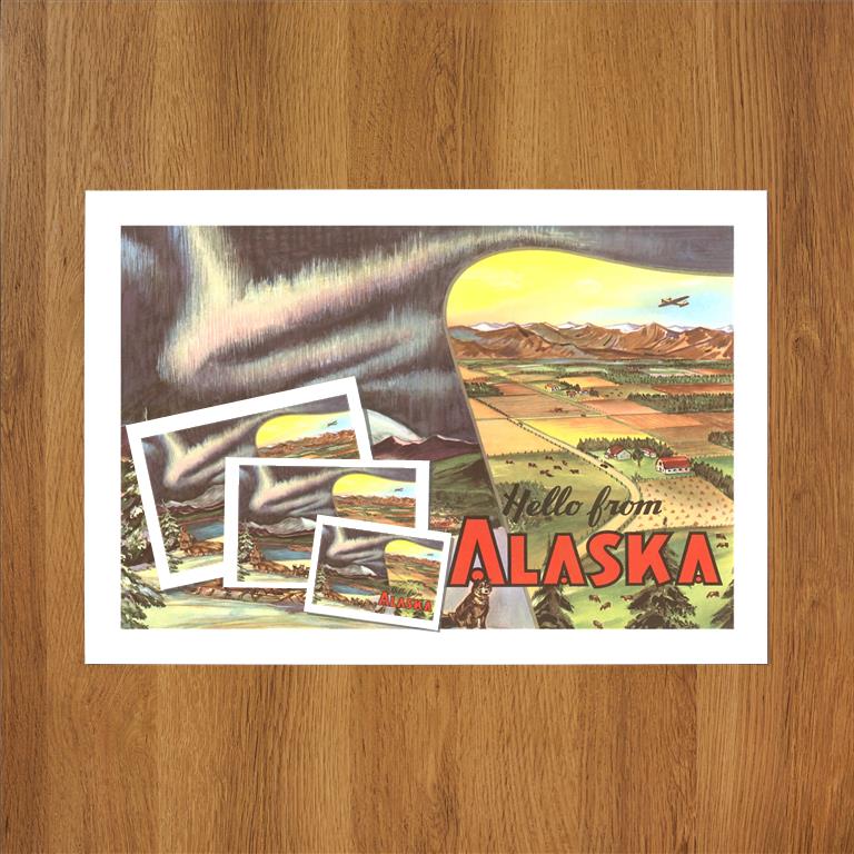 AK-116 Northern Lights, Sled Dogs - Vintage Image