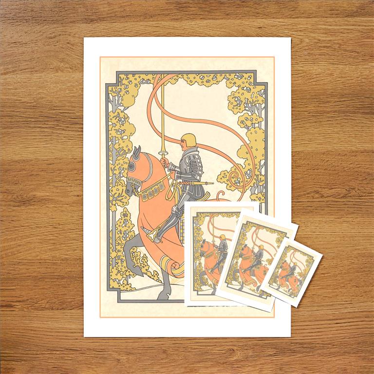 AM-65 Art Nouveau Knight on Charger - Vintage Image