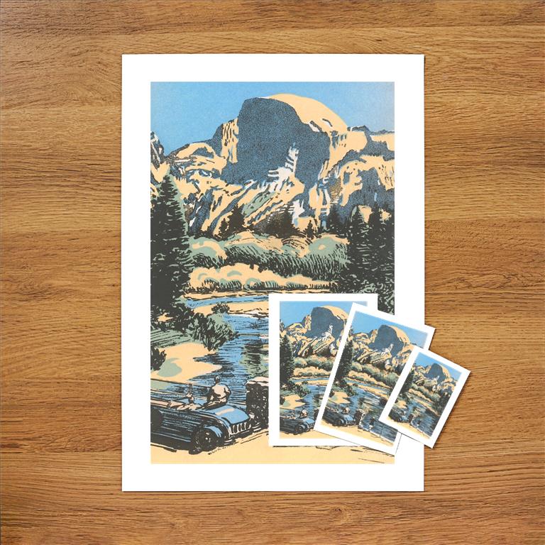 AM-194 Scenic Vista Woodcut - Vintage Image