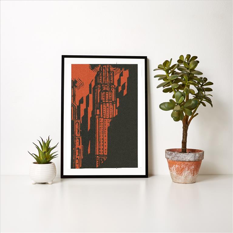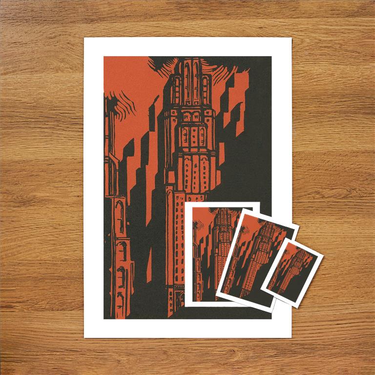 AM-304 Woodcut of Skyscraper - Vintage Image
