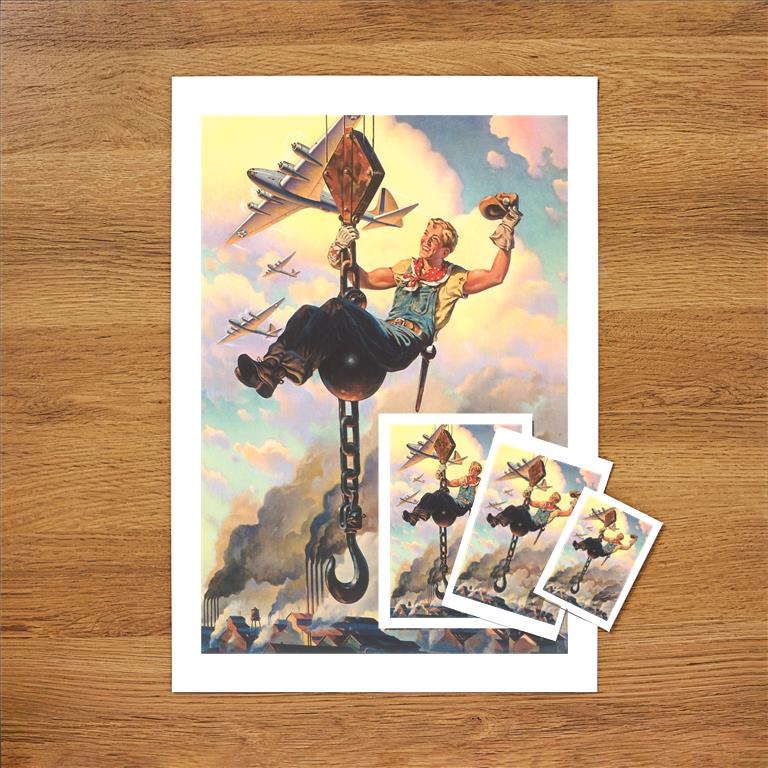 AM-321 Cowboy Construction Worker on Hook - Vintage Image