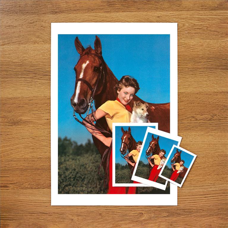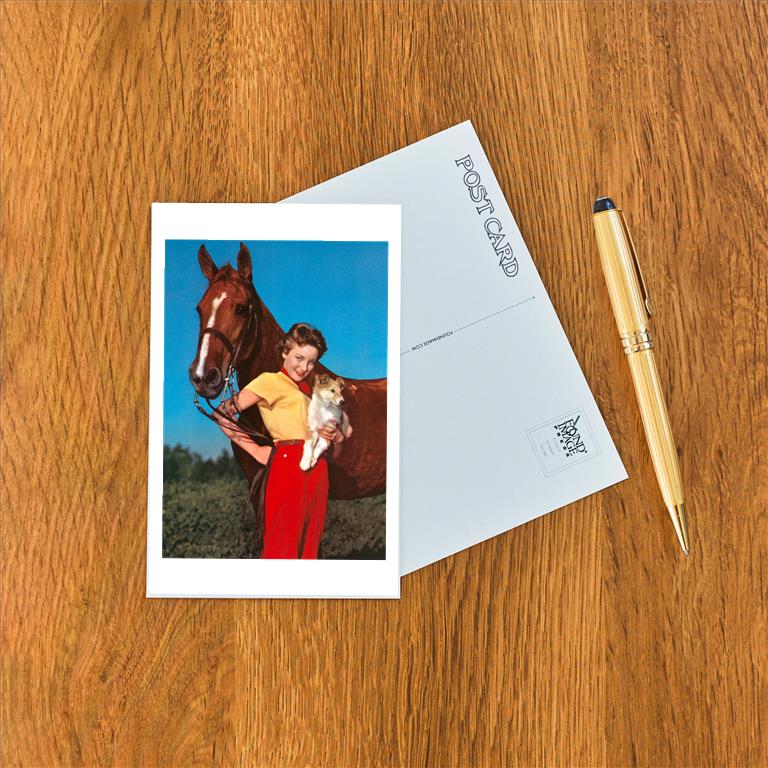 AM-342 Woman with Collie Puppy and Horse - Vintage Image