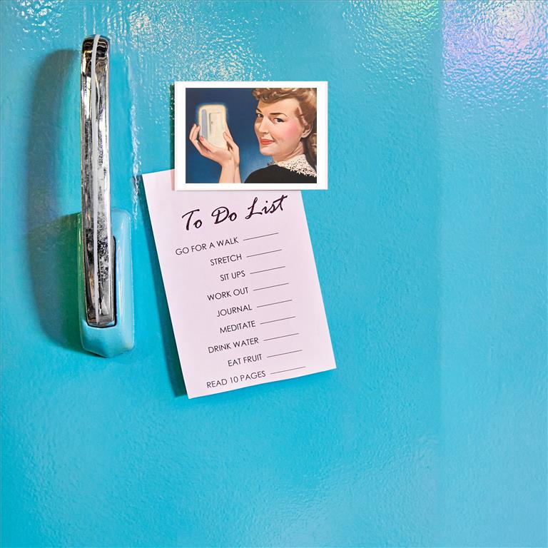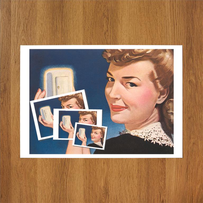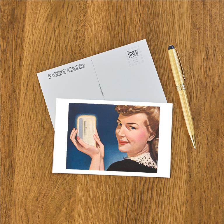 AM-365 Woman Holding Miniature Fridge - Vintage Image