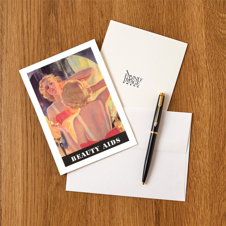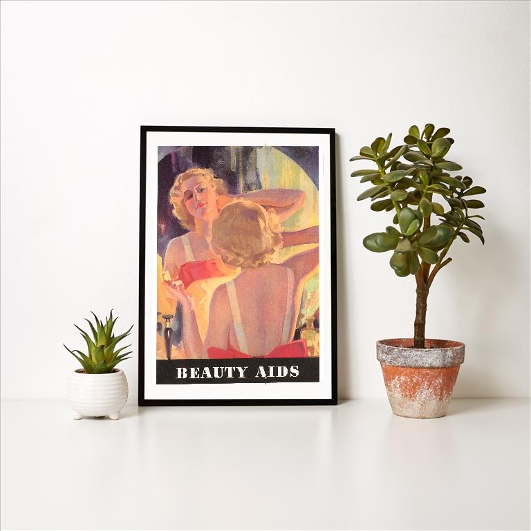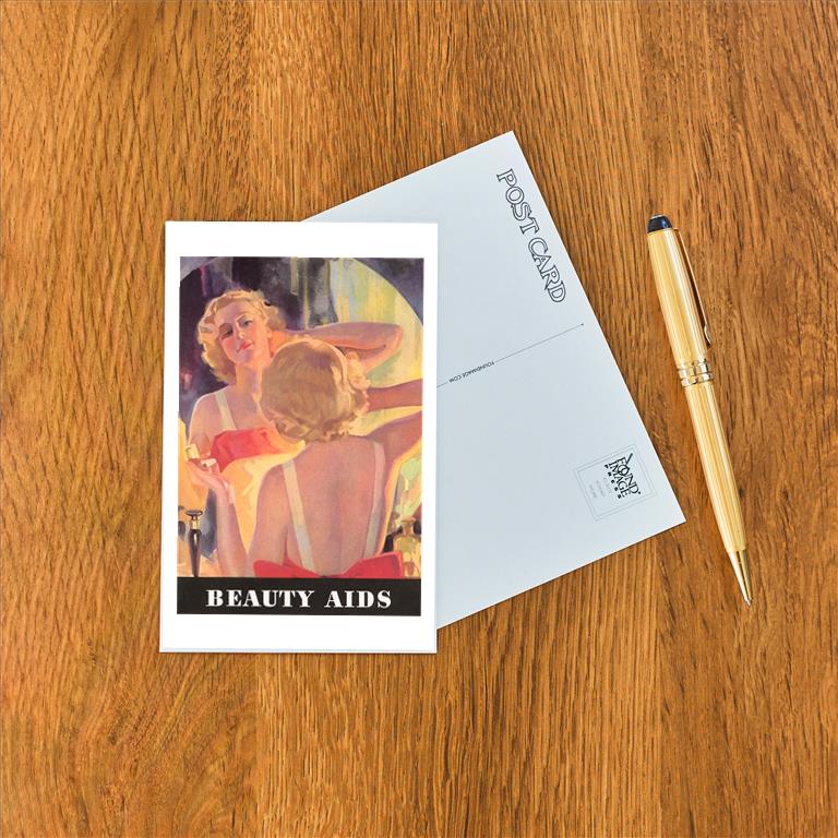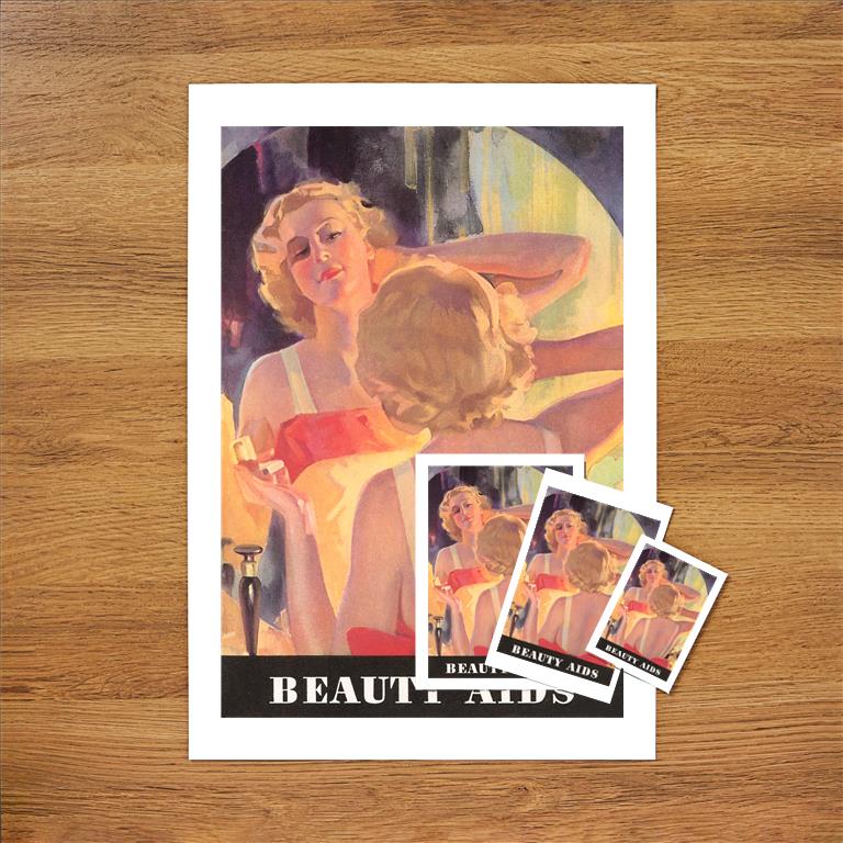 AM-382 Beauty Aids, Woman at Mirror - Vintage Image