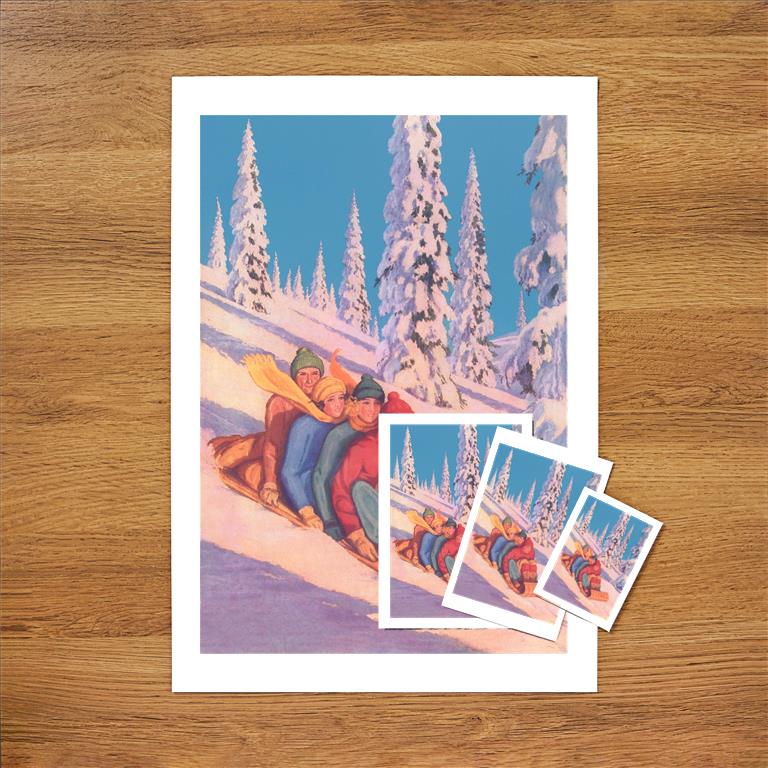 AM-826 Winter Sledding - Vintage Image