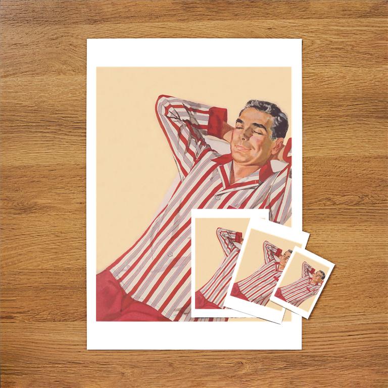 AM-944 Sleeping Man in Pajamas - Vintage Image